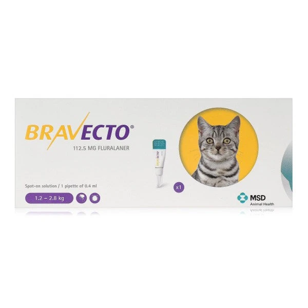Bravecto Spot-On Solution is an effective flea and tick treatment for Cats. Bravecto can be applied topically using the easy to use ‘Twist’n’Use’ design, with this spot on solution being effective for 12 weeks following a single dose.