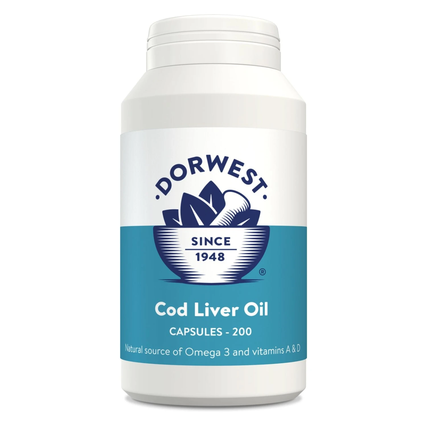 Omega 3 is considered the most beneficial of the omega polyunsaturated fats and has three different natural forms – ALA, EPA and DHA. EPA and DHA are the most active and are only found in marine sources of omega 3. ‘Fish oil’ products contain omega 3 but cod liver oil has the additional benefit of naturally occurring high levels of vitamins A & D. Dogs rely much more heavily on their diet as a source of vitamin D than people, who can synthesis the vitamin in their skin when exposed to UV radiation from the sun.