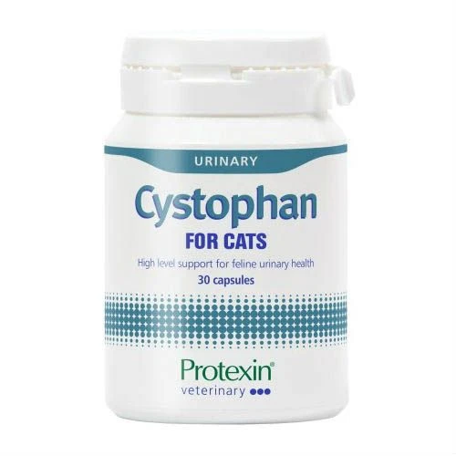 Cystophan is manufactured by Protexin and is used to treat bladder disease in cats. Cystophan contains glucosamine, hyaluronic acid and tryptophan in forms which are believed to be particularly helpful in protecting the bladder wall. It also has a tempting chicken flavour to make it palatable to cats.