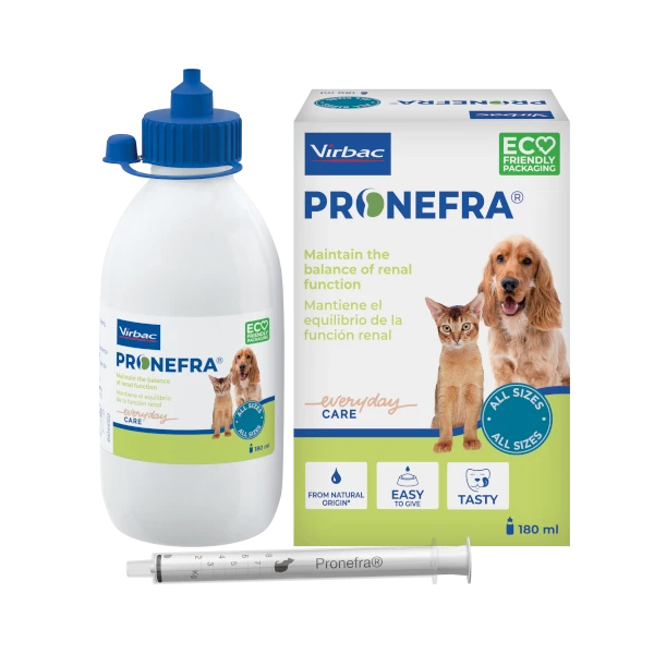 Pronefra® Oral Suspension is a unique, highly palatable, liquid suspension to help support the normal function and health of the kidneys in cats and dogs.
