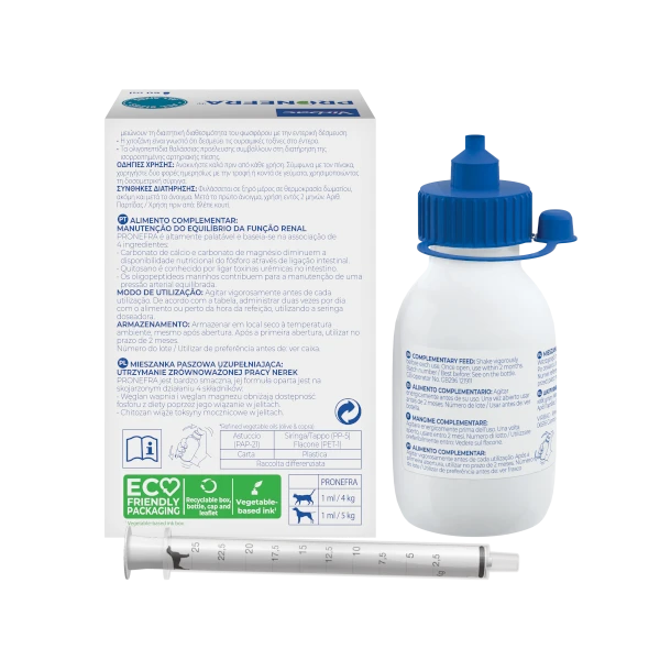 An easy to use liquid that can be mixed with food or given directly into the mouth, Pronefra® has a unique combination of 4 ingredients which;